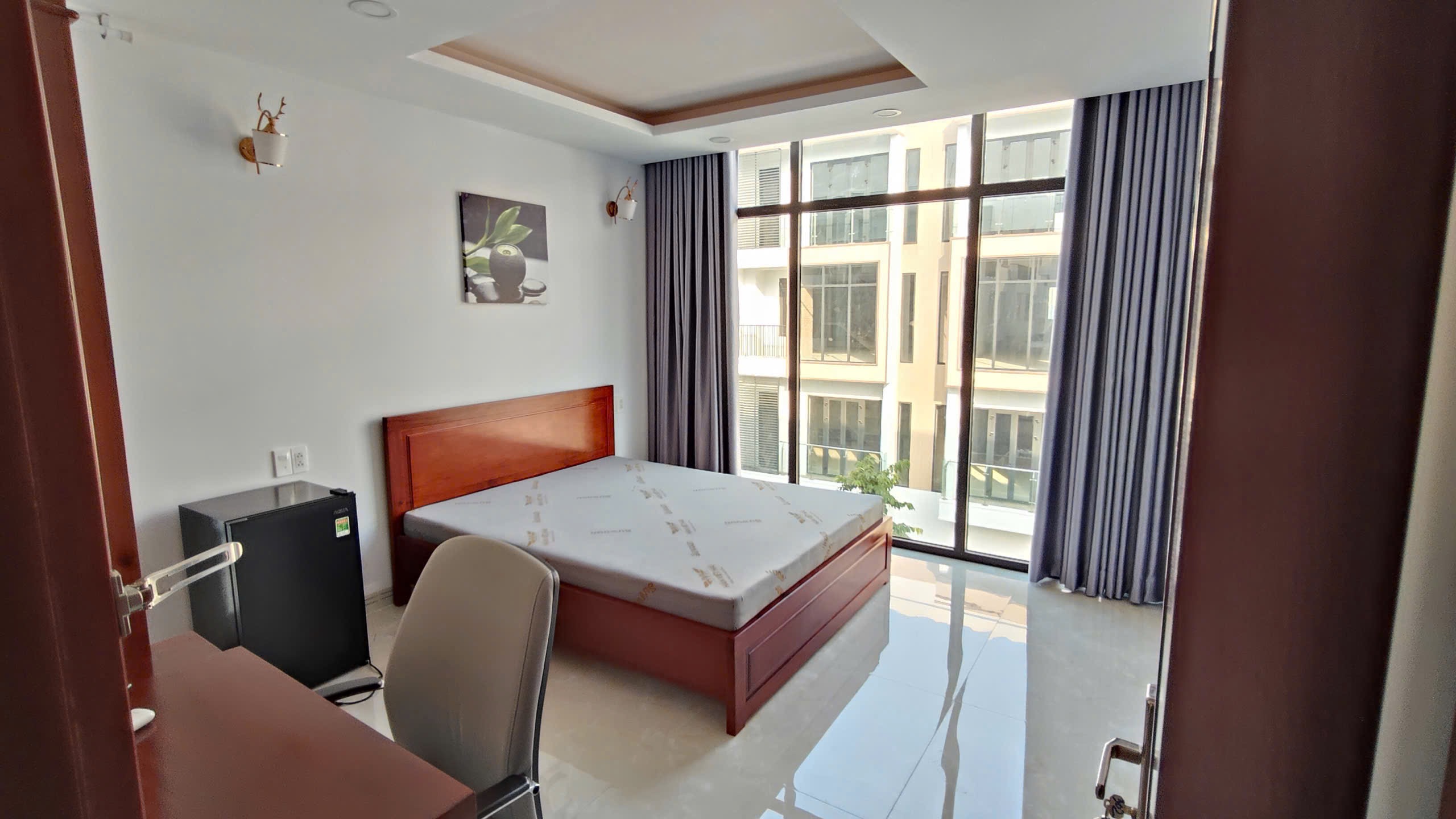 Đầy đủ : Giường nệm, tủ áo, bàn ghế, bếp điện, quạt hút, nước nóng, máy lạnh, tủ lạnh, máy giặt.